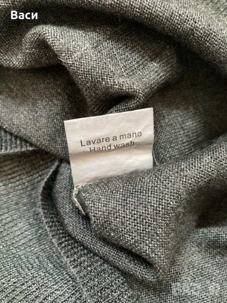 Пуловера е класически модел с ефект на леко протрито и преливане на цветовете от сиво черно до маслено звлено. Много в хубав ,но не мога да уловя красотата му в снимки.