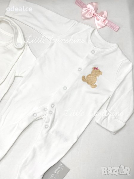 - Гащеризон за изписване - бял, с висококачествена бродерия Меченце, органичен памук, модел с ръкавички *Размер 0-3м