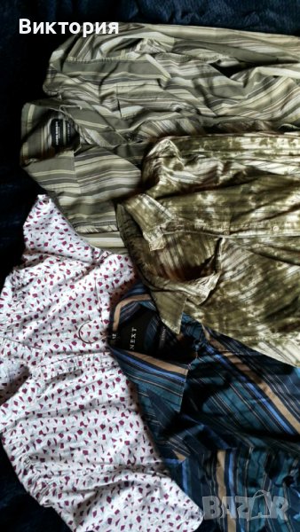 4 ризи- Tom Tailor- 8лв.; Cedar Wood State- 7 лв.; SIGNUM- 7 лв; Jack&Jones- 10 лв. , размер L. За опо -подробни размери и още снимки , пишете . Ризите са предимно необличани и неразличими от нови.