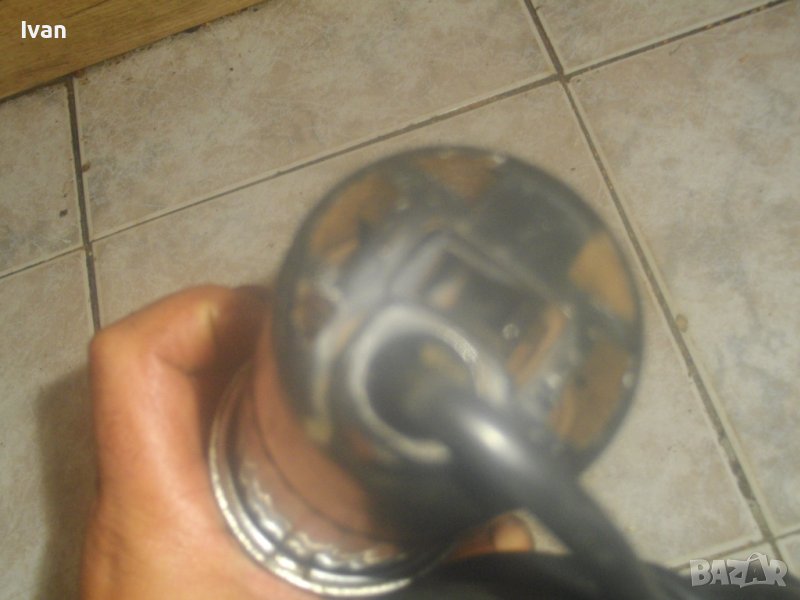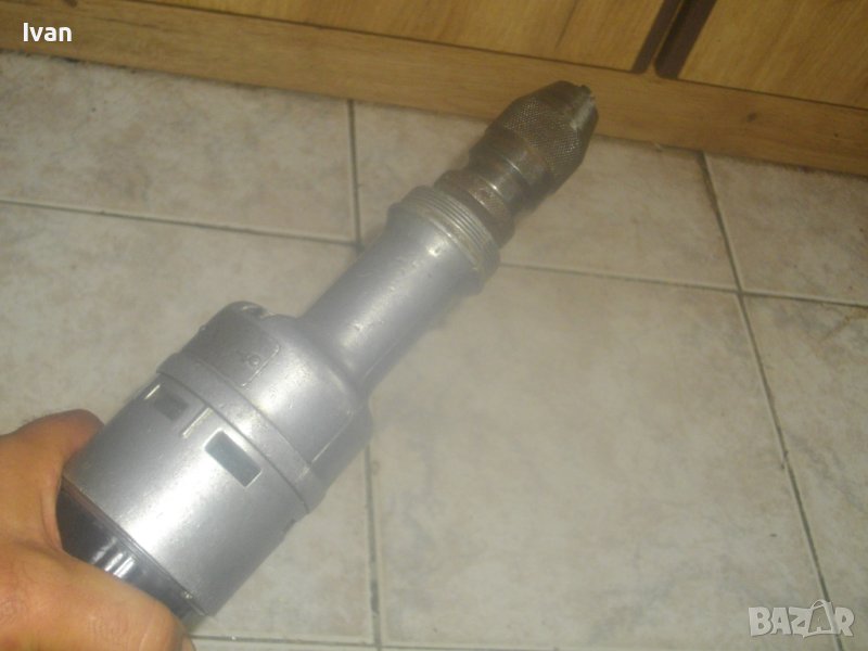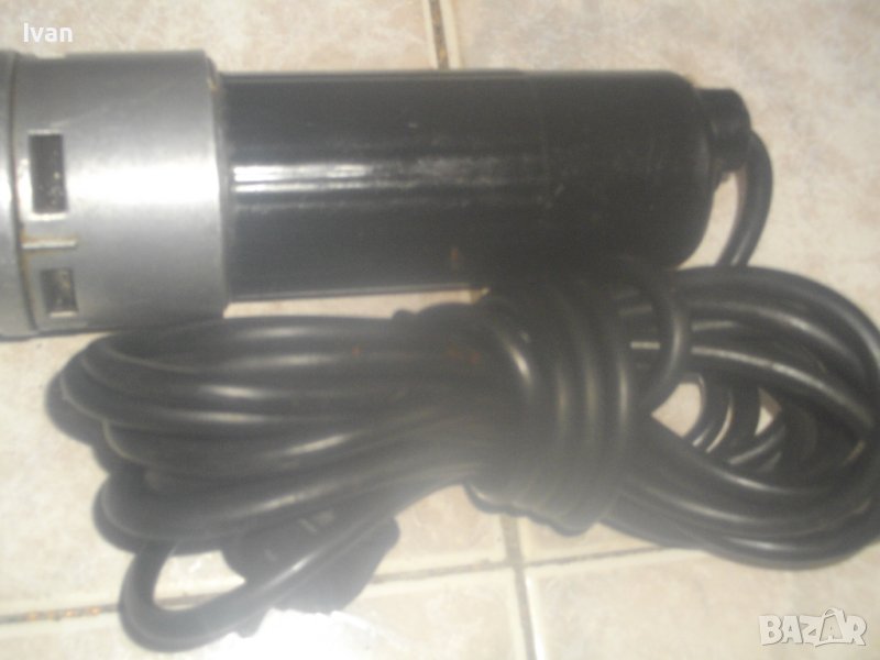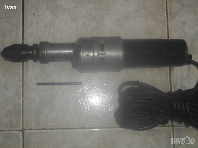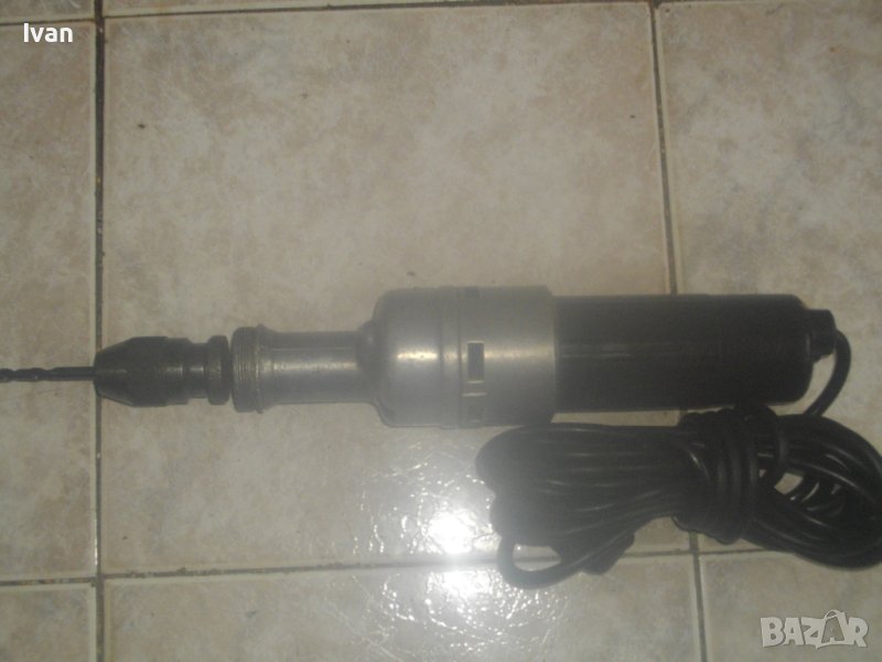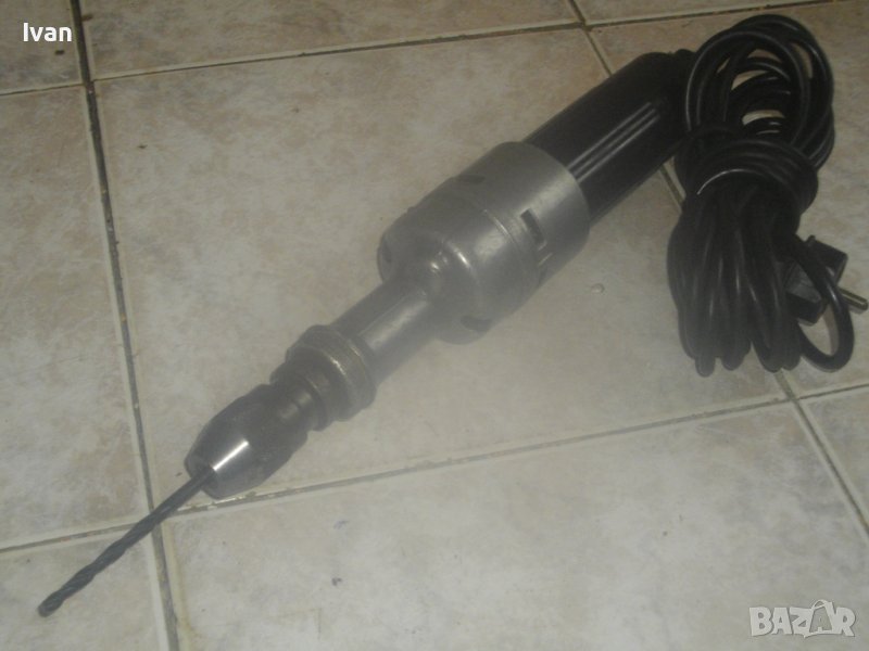 ОПИСАНИЕ на ел.машина прав шлайф. Немско оригинално старо качество. Масивна. Марка - BOSCH. Произовдство оригинално GERMANY. Много запазен външне вид на машината и отлично техническо/работно състояние. Мощност на мотора - 110 вата, пробиване в желязо - ф 6 мм, пробив в дъърво - ф 8 мм. Алуминиева предна част на глава и корпус. Бакелит задна част на корпуса. Гумиран оригинален кабел с профи дължина 10 м. Патронник - инструментална стомана, самонатягащ със захват 1,5-10 мм. Дължина на машината - 36 см, широчина ф 50 мм, заден превключвател пусков. Тегло - 2,0 кг. Поставена нова бургия/свредло - универсална дърво-метал за проба и тест.