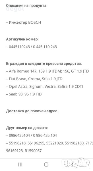 1бр.Дюзи Bosch 0445110243 1.9 150к.с. JTDm,CDTI,TID.Opel,Alfa Romeo,Fiat,Saab → Обява 42428002