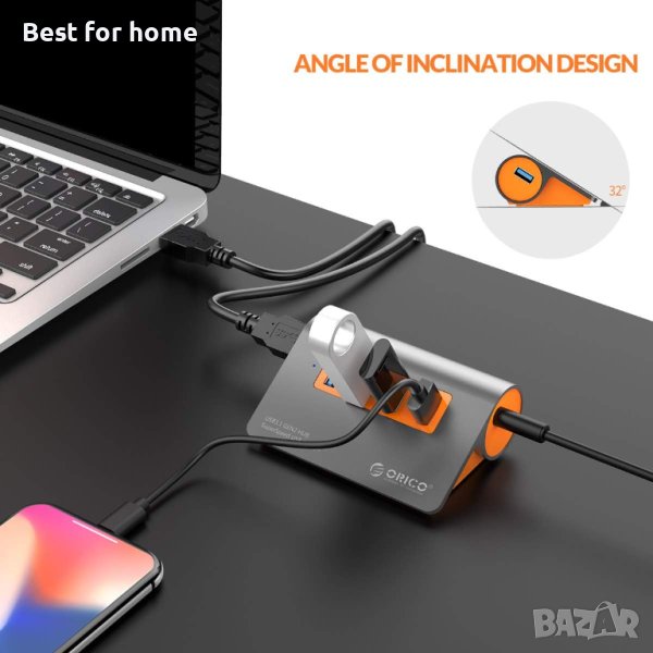 ORICO 4-портов захранван USB 3.1 Gen2 хъб Алуминиев хъб за данни 10 Gbps Super Speed USB сплитер