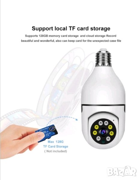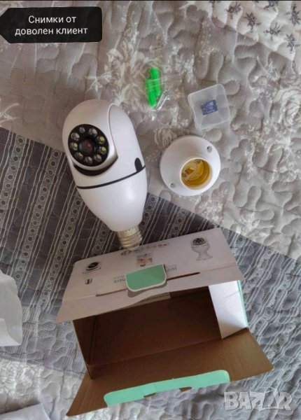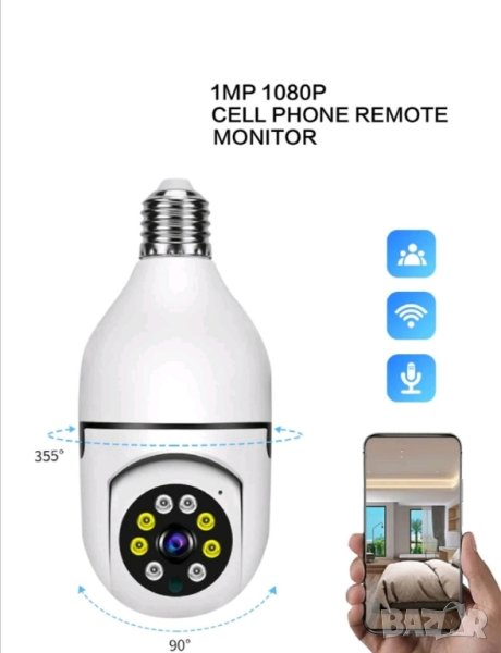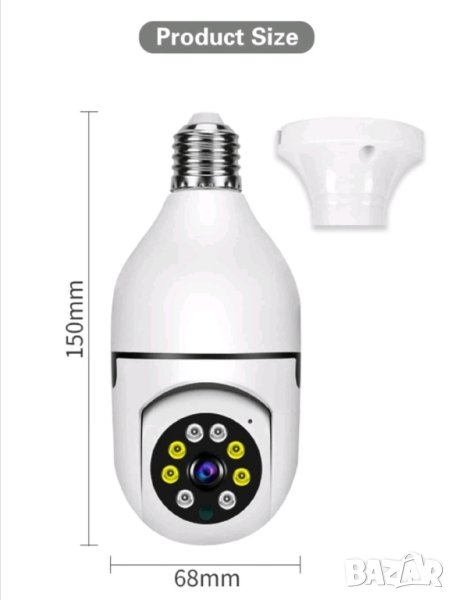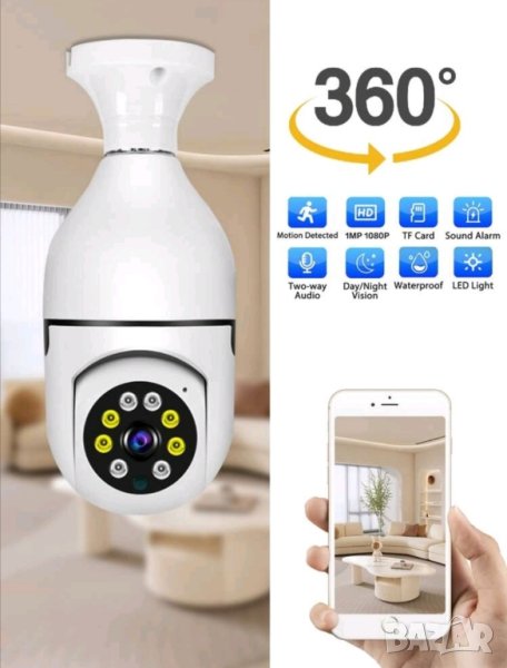 Водоустойчива безжична камера тип крушка с ъгъл на видимост 360° и вграден микрофон.
