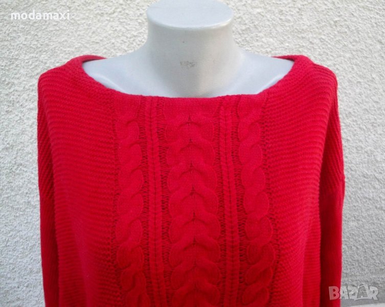 Пуловер в красив, червен цвят, с лодка деколте.