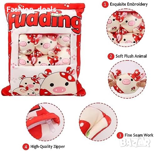 Включва мека възглавница от плюшен кравай и 6 сладки играчки за кукли от плюшен кравай.