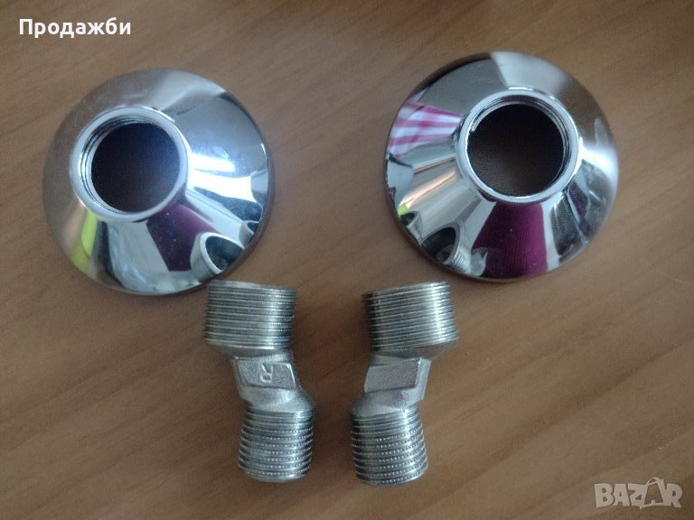 Продавам 2 бр. кутийки с розетки за смесители плюс аксесоари към тях за монтиране. Не са нови, тоест не са купувани сега, но никога не са били използвани. Дължина на ексцентриците: 5 см. Цена: 3 Евро/бр.