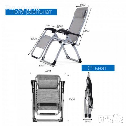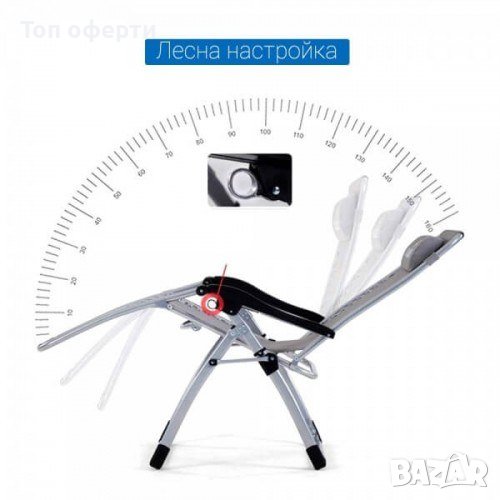 Сгъваем шезлонг, много здрава конструкция до 150кг, поставка за чаши