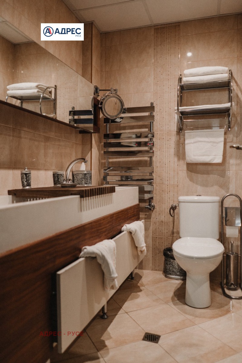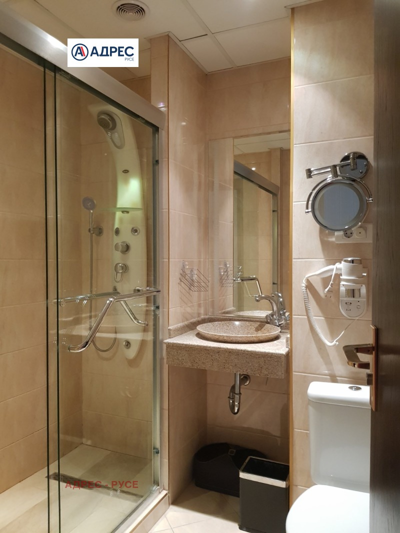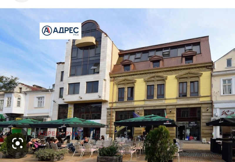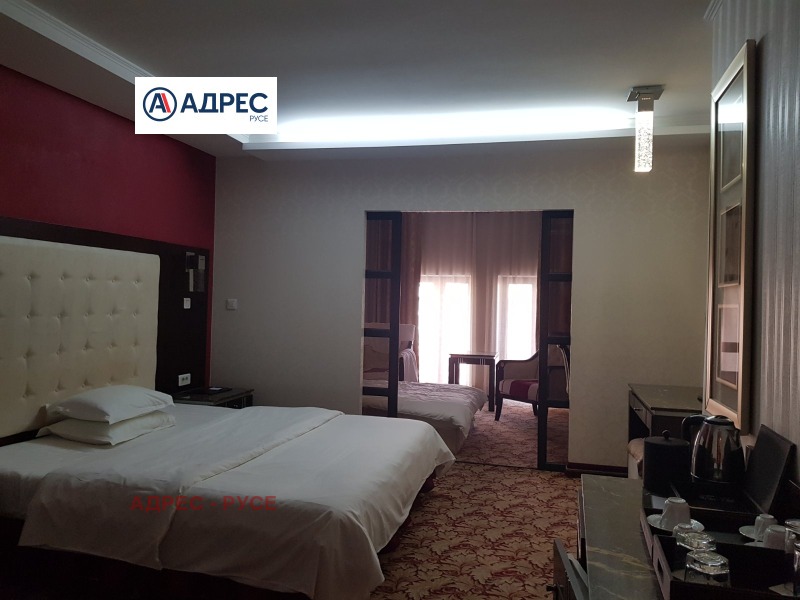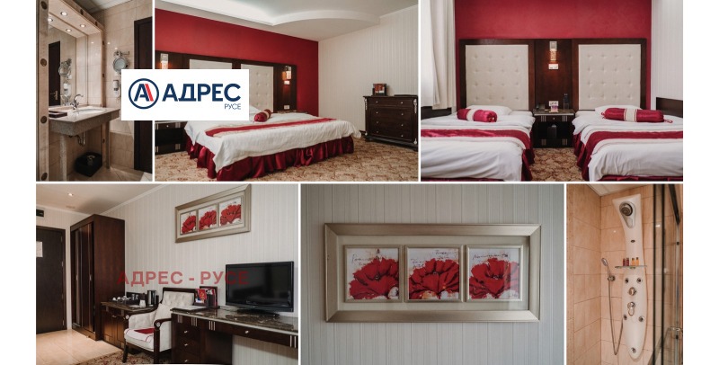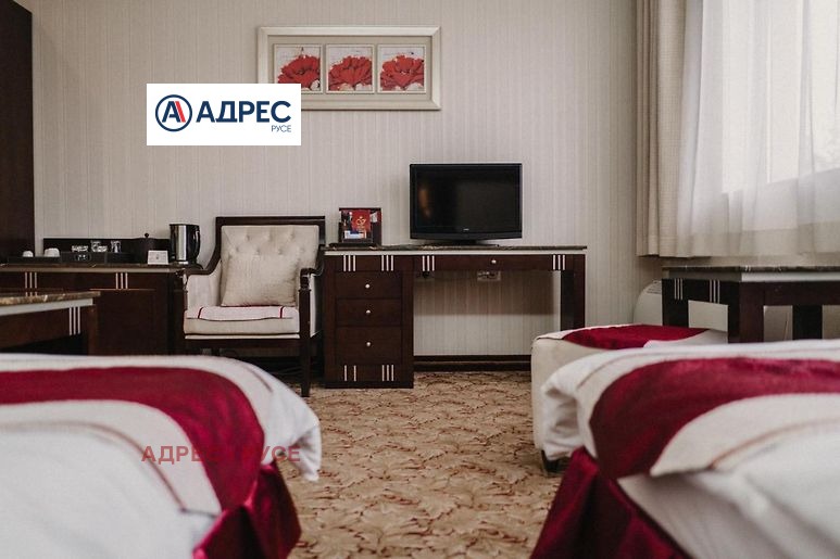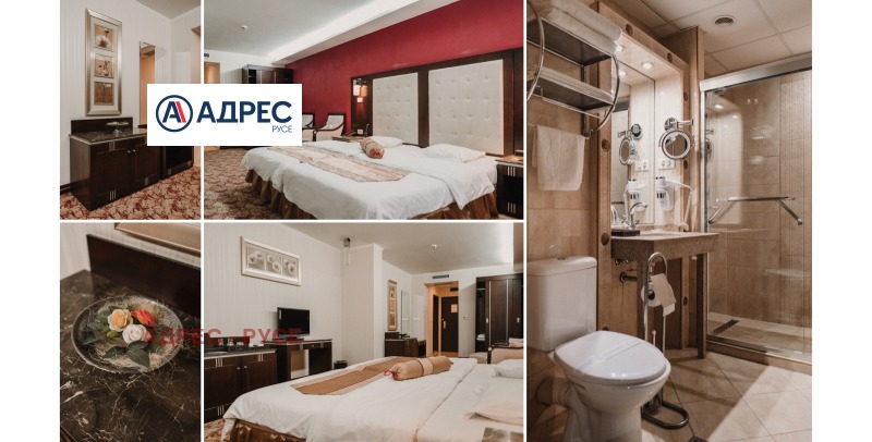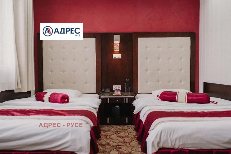 Предлагаме Ви самостоятелна сграда /хотел/, находяща се в Идеалния център на гр. Русе, на главната търговска улица, в близост до множество заведения, ресторанти, търговски обекти и държавни институции. Сградата е архитектурен паметник на културата. В сутерена са разположени сервизни помещения, стаи за персонал, кухня, конферентни зали. На етаж две рецепция. На трети, четвърти и пети етаж са разположени хотелските стаи. На етаж шест - покривна тераса 85 кв. м с панорамна гледка към централния площад на града и възможност да се устрои лятна градина. Хотелът разполага с 9 студия, 2 луксозни стаи, 7 класически двойни стаи, 2 икономични стаи и един апартамент. Апартаментът се състои от спалня, хол с мека мебел и работен кът с компютър и принтер. Луксозните бизнес студиа и луксозните стаи разполагат със спалня и офис част оборудвана с компютър, принтер и мека мебел. Апартаментът, студиата и луксозните стаи са с красива гледка към централната пешеходна улица. Стандартните стаи са с две легла или спалня и кът с мека мебел. Хотелът разполага и със специално пригодена стая за хора с увреждания. Всички помещения са уютни и комфортни, и предлагат изискана обстановка и приятна атмосфера, обзаведени са модерно и са оборудвани с централна климатизация, минибар, телевизор с кабелна телевизия. Баните са големи, с тоалет и душ-кабини с хидромасажен душ панел, сешоар. Конферентните зали са оборудвани с цифрова конферентна техника и техника за симултанен превод, с възможност да се излъчват четири езикови канала и система за безжично гласуване. Залите са подходящи за провеждане на конференции, конвенции, симпозиуми, презентации и учебни мероприятия.