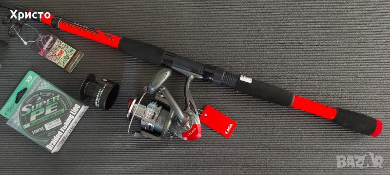 ОФЕРТА! Нови спининг въдица с макара и плетено влакно за 80лв общо, спининг риболов, тролинг, такъм → Обява 42440590