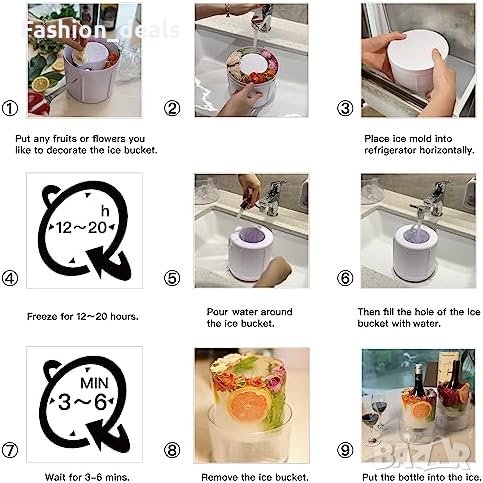 Лесен процес: Напълнете формата с вода, замразете за 12 до 24 часа и извадете леда.