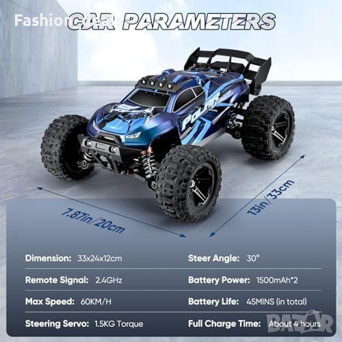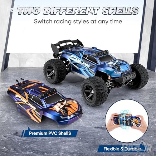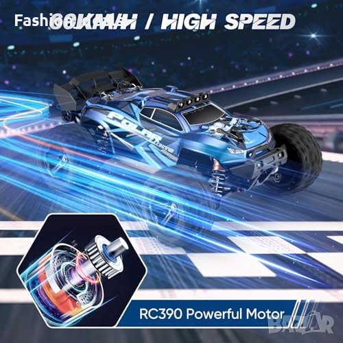 Мощен двигател и висока скорост: Този RC автомобил е оборудван с висококачествен двигател RC390, който може да го задвижи до впечатляващата максимална скорост от 60 км/ч. Комбинацията от двигателя, 30A ESC (електронен регулатор на скоростта) и диференциал на предавките от сплав осигурява максимално преобразуване на енергията, което ви позволява да изпреварите конкуренцията.