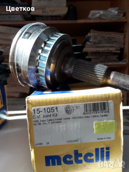 Продавам италиански карета Metteli подходящи за някои модели на Опел - Астра,Аскона,Калибра,Вектра,Кадет и Зафира. 1.Вътрешно каре комплект с маншон,грес и скоби с вътрешни и външни шлици -22.Оригинален номер 90125876. Един брой.Цена - 33 евро. 2.Външно каре комплект с маншон,грес и скоби за кола с ABS .Вътрешни шлици-25,външни-33,пръстен за АБС -29 зъба.Оригинален номер 90334948.Един брой.Цена 27евро. Доставка с куриер,преглед и касов бон.