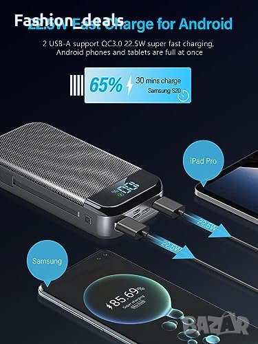 Включва захранваща банка, кабел за бързо зареждане Type-C и ръководство за потребителя.