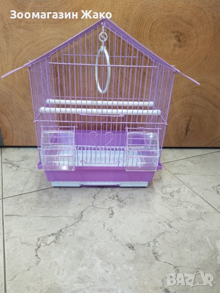 Размери: дължина -28,5 см, дълбочина -21 см, височина в най-високата точка -38 см.Оборудвани с 2 хранилки,2 кацалки,люлка,тарелка и скара за лесно почистване.