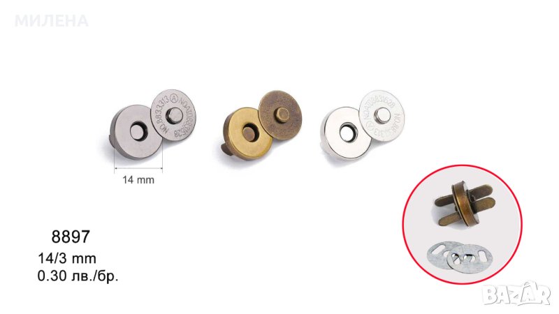 Магнитното копче е подходящо за закопчаване на дамски чанти , портмонета и всякакъв вид аксесоари.