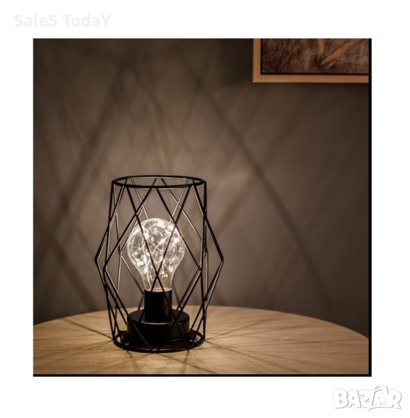 Настолна лампа на батерии с черен метален мрежест дизайн и 10 светодиодна лампа с верига. Работи с 3 батерии AAA (не са включени).