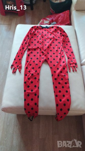 Костюм за Хелоуин на калинката, гащеризон с цип на гърба и маска. За ръст до 128 см. Има забележки (бримки) около ципа, но не пречи да се ползва ,снимани са.