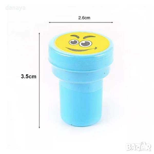 Цветни печати с различни изражения на лицето, общо 6 варианта. Всяко печатче печата в червен цвят.