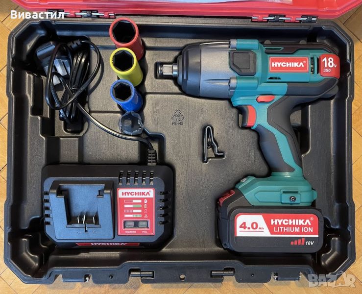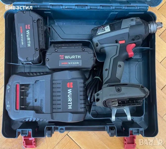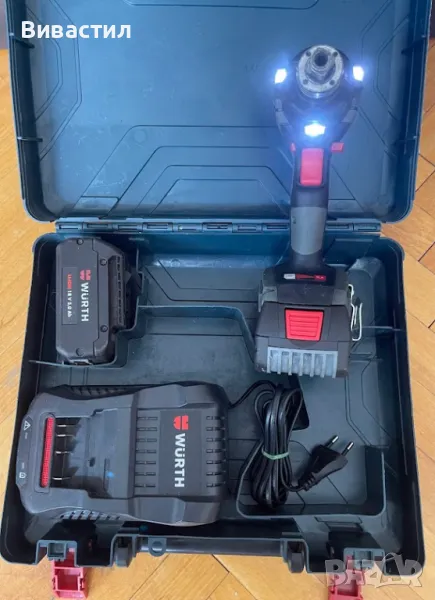 Включени аксесоари: 4 глухи ключа (17/19/21/23мм), акумулаторна батерия, зарядно у-во 2.4Ah с автоматично изключване на зареждането с LED индикация.Всичко се продава и по отделно.Постоянен внос на машини от Германия ако се интересувате от марка или модел не се притеснявайте да попитате на линия сме. Моля вижте и другите ни обяви разполагаме с всякакви машини.Обявената цена е без батерия и зарядно.