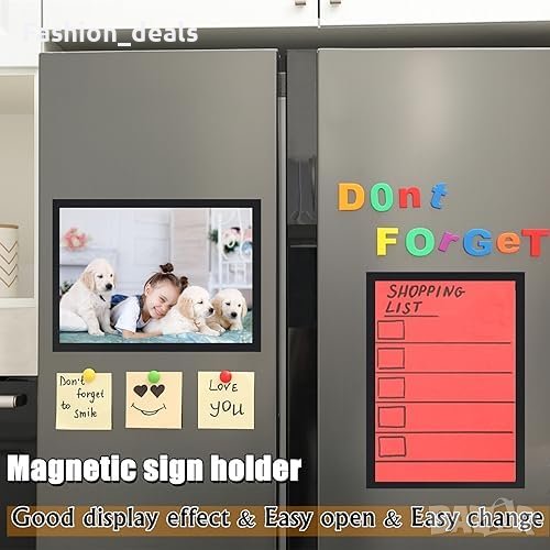 Магнитният държач за табели има прост дизайн, при който два слоя PVC плоскости се привличат с магнит. Този дизайн гарантира, че документите или снимките ви се задържат сигурно на място, като ги предпазва от падане.