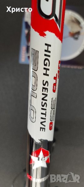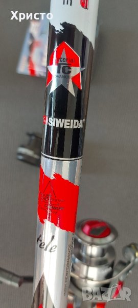 Болонезе на фирмата SIWEIDA е изработен от качествен карбон на четири секции, с дължина 6м или 4м,SIC водачи, метална тапа и макародържач. Акция до 35гр.В затворено състояние е 125см. Тегло 370гр.