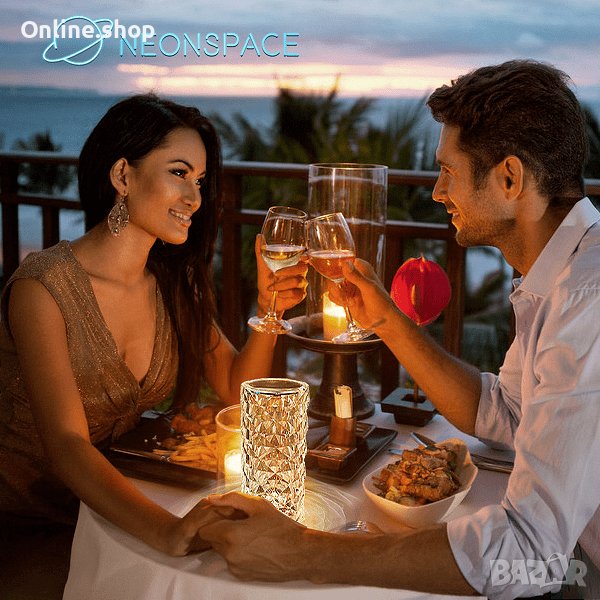 LED кристална настолна лампа със семпъл дизайн и 3D ефект на диамант се вписва чудесно към всеки интериор и създава уют в дома ви.