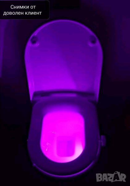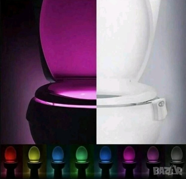 - ЛЕД лампа за баня или тоалетна чиния с 8 сменящи се цвята и сензор за движение.