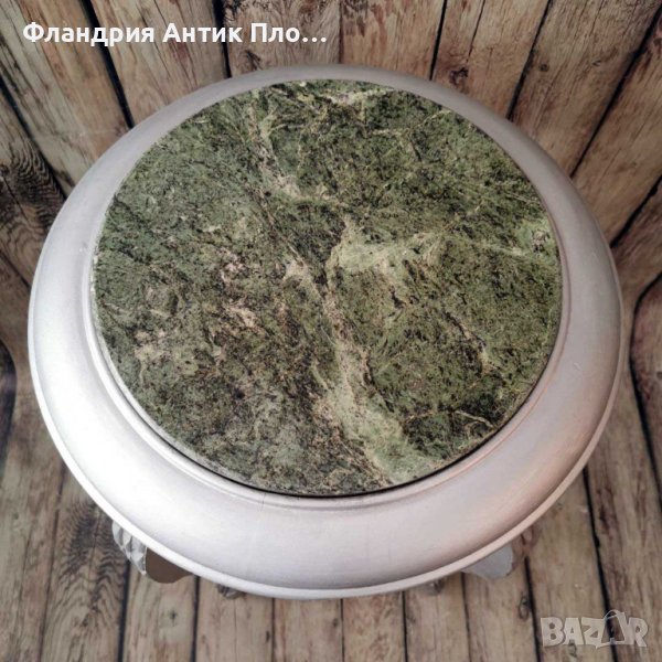 Мраморният плот в зелено придава на масата допълнителна уникалност и изящество. Мраморът е в нюансите на зеленото, които добавят свежест и стил към облика на масата.
