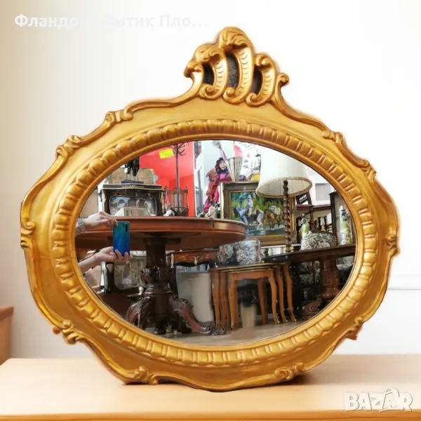 Рамката на огледалото е изработена с изключителна детайлност и внимание към декоративните детайли. Орнаментите, разположени около рамката, са фини и изразителни, с извити линии, които придават на огледалото изключителен характер.
