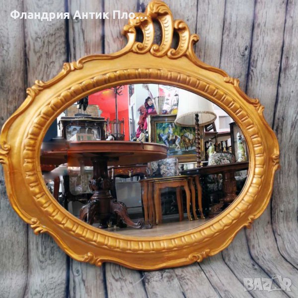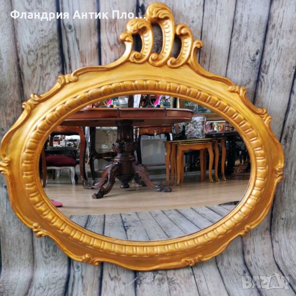 Това овално стенно огледало е вдъхновено от богатия стил на Луи XV и носи в себе си изискаността и изяществото, характерни за този период. С изразителни орнаменти и златист цвят, това огледало е истинска проява на разкош и разточителство.