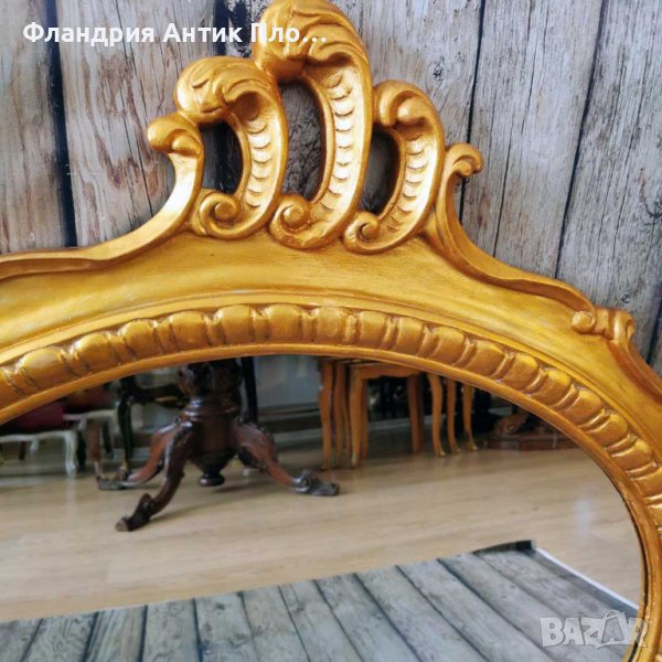 Златистият цвят на рамката е бляскав и благороден, създавайки визуално изобилие. Този цвят съчетан с богатите детайли прави огледалото наистина величествено и впечатляващо.