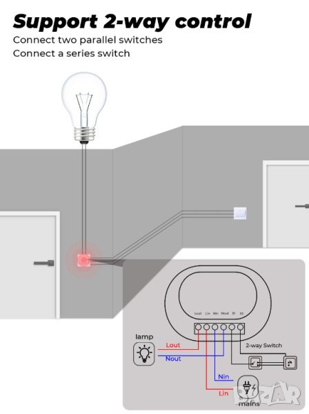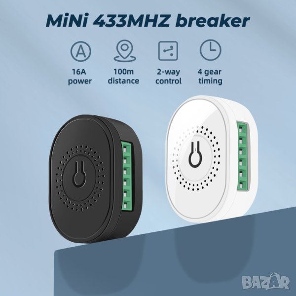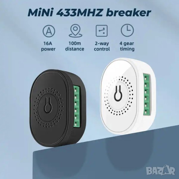 Интелигентен модул за управление на осветление и устройства в умния дом! С вградена таймер функция и дистанционно управление чрез 433MHz радиовълни, този модул предлага удобно и автоматизирано управление на домакински уреди.