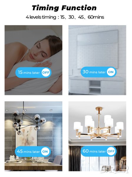 Таймер функция: Програмируеми ON/OFF schedules денонощно