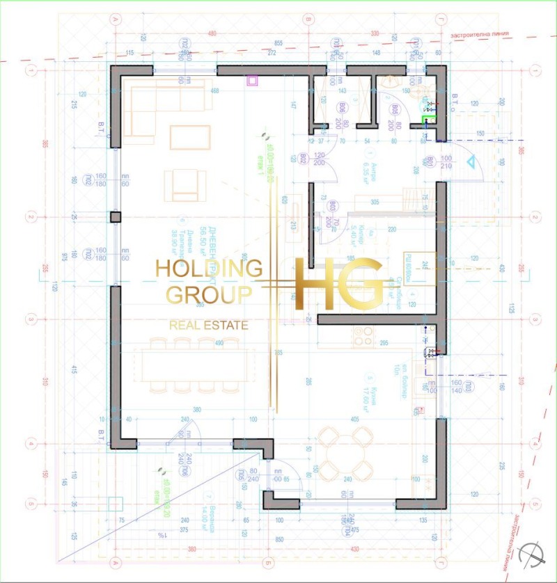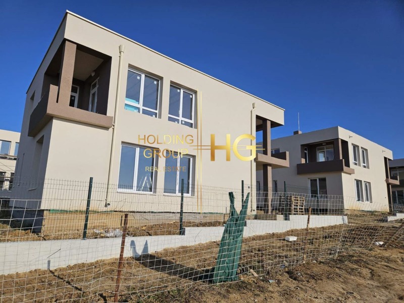 HOLDING GROUP real estate представя на Вашето внимание новострояща се къща в м-ст Боровец Юг. Върху парцел с площ от 500 кв.м. се изгражда този чудесен дом с разгъната застроена площ от 200 кв.м. Ситуиран е на два етажа със следното разпределение: На първи етаж - антре, килер, сервизно помещение, просторен дневен тракт / 56,50 кв.м./ с кухненска част / 17,60 кв.м./ с излаз на веранда / 14 кв.м./. По вътрешни стълби се стига до етаж две, където са разположени коридор, три просторни спални / едната със собствен санитарен възел/ с излаз на балкон, кабинет и баня с тоалетна. Къщата е част от комплекс, състоящ се от шест идентични къщи, всяка със собствен двор и паркомясто. Ще бъде изградена обща септична яма с пречиствателна станция. Красива морска панорама. Без такса поддръжка. Възможност за избор на къща. На 150 м от главен път, автобусна спирка, магазини...