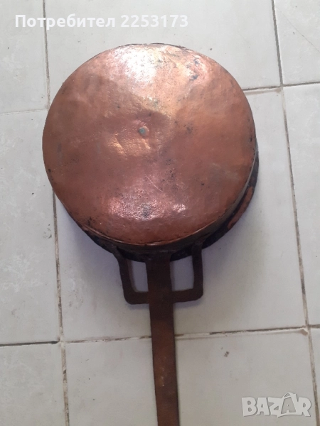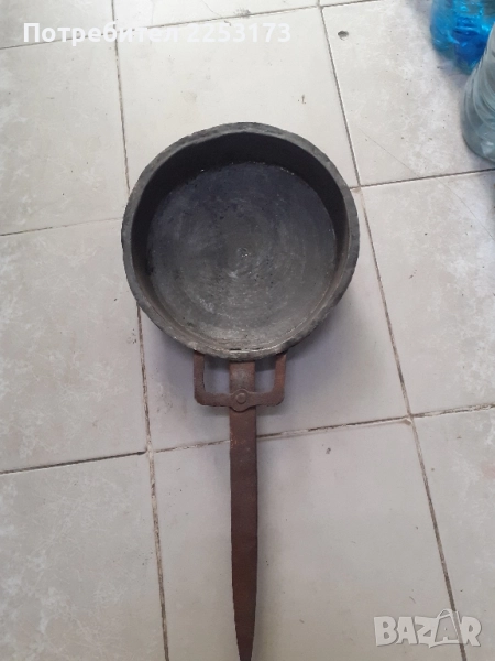 За бр.тиган.Калай стар отватре.м.м.Сн.7 и8 е тиган със старо калайдисване отвътре и просвет долу.Шир 26см,дълб.6 ,5см,дръжка кована 30см.Цена 60лв.Добър за стена,село,декор,ремонт и др.