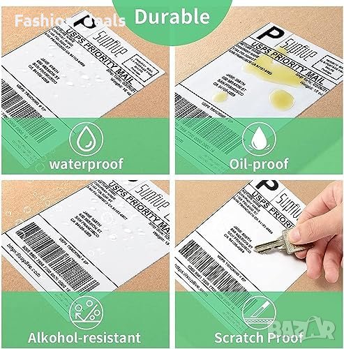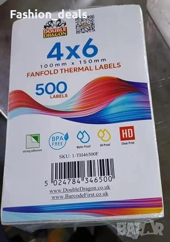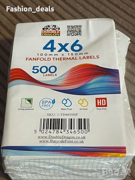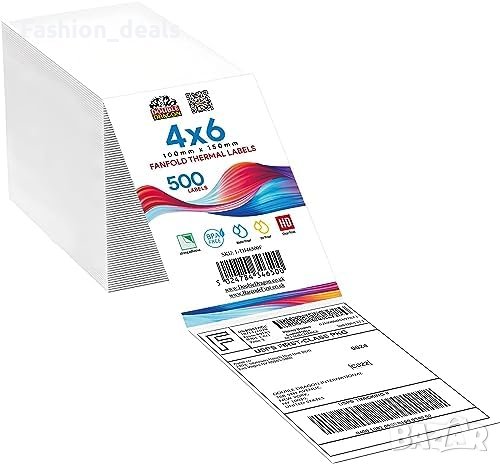 Размер на етикета: 100 мм x 150 мм (4" x 6"). 500 етикета на стек във формат "ветрило".