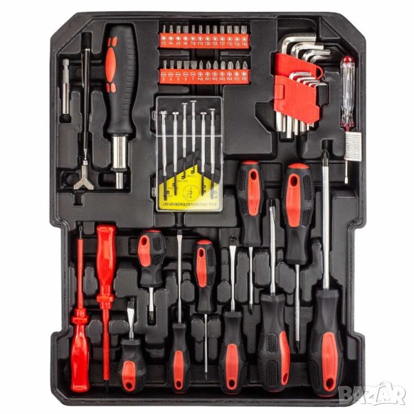 Сред инструментите ще откриете отвертки, френски ключове, клещи, макетни ножове, шестограни и много други, разпределени на четири нива, както следва: