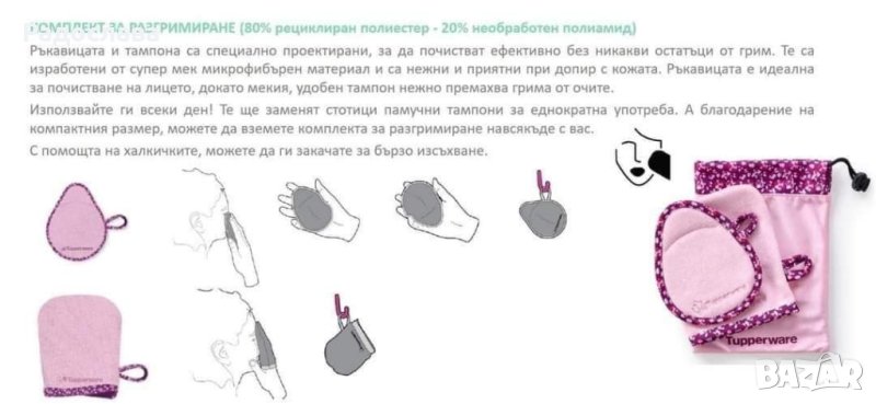 Микрофибърен комплект за почистване на грим от Tupperware → Обява 42463815