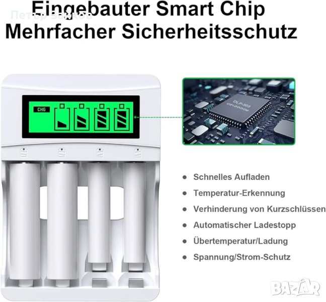 Никелирани положителни и отрицателни електроди, против ръжда и окисление, вграден интелигентен чип, многократна защита от презареждане/пренапрежение/прекомерно разреждане, по-безопасен за използване.