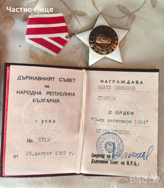 ОРДЕН "9 СЕПТЕМВРИ 1944" Il СТЕПЕН + ОРДЕНСКА КНИЖКА, снимка 1 - Антикварни и старинни предмети - 42467115 ОРДЕН "9 СЕПТЕМВРИ 1944" Il СТЕПЕН + ОРДЕНСКА КНИЖКА, снимка 2 - Антикварни и старинни предмети - 42467115 ОРДЕН "9 СЕПТЕМВРИ 1944" Il СТЕПЕН + ОРДЕНСКА КНИЖКА, снимка 3 - Антикварни и старинни предмети - 42467115 ОРДЕН "9 СЕПТЕМВРИ 1944" Il СТЕПЕН + ОРДЕНСКА КНИЖКА, снимка 4 - Антикварни и старинни предмети - 42467115 ОРДЕН "9 СЕПТЕМВРИ 1944" Il СТЕПЕН + ОРДЕНСКА КНИЖКА, снимка 5 - Антикварни и старинни предмети - 42467115 1/5