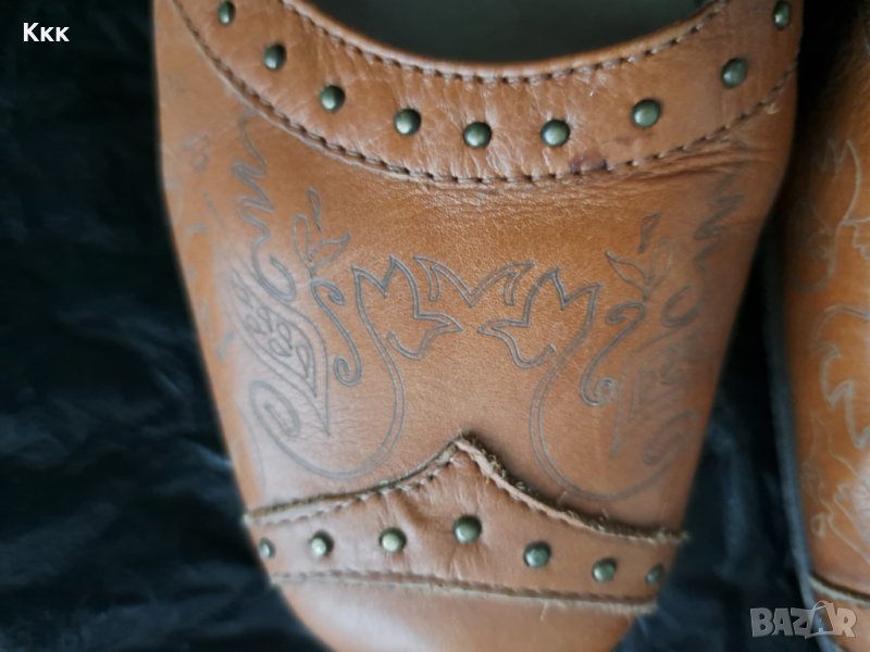 Дамски обувки Габина, естествена кожа, красиви орнаменти и украси, в актуалния Камел цвят. Закупени са за 150лв. Продавам ги за 25лв., тъй като са обувани са броени пъти, но са много запазени. Размер 40, отговарят си на номера.