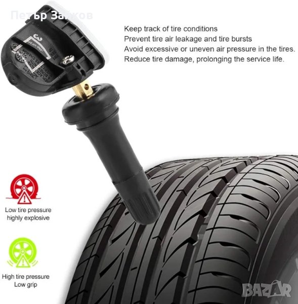 Висококачествен материал: сензорът за налягане в гумите е изработен от висококачествен мед + гумен материал, който е устойчив на износване, устойчив на корозия, издръжлив и издръжлив.