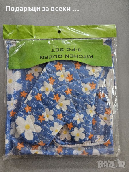 Кухненският комплект от 3 части е идеално решение за всеки, който обича да готви с комфорт и стил. Включва готварска престилка, топлоустойчива ръкавица и ръкохватка, които осигуряват защита при работа с горещи съдове и предотвратяват замърсяване на дрехите.