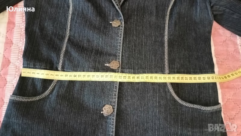 Дънково сако, тъмно син цвят с интересен шев. Има еластичност.