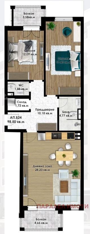 20071051 Паралел имоти предлага на вашето внимание тристаен апартамент със северозападно изложение и следното разпределение:
