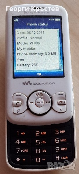 W100 Spiro - телефона се включва и работи, зарежда си батерията, която не е пробвана, но мисля, че е слаба, активен и стегнат слайд, клавиатура, камера, слушалка и микрофон са ОК, няма БГ меню, по - скоро за смяна на панел, без заден капак и зарядно - 28 лв.
