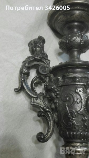 Жардиниерата е разкошна, с изключително фина и детайлна пластика, видно от снимките. Размери: диаметър на стъклената плафониера - 25 см., височина без свещта - 24 см., със свещта - 50 см. Металната част на жардиниерата е комбинация от посребрен месинг и друг тънколивък метал, характерен за предметите на WMF. Стъклото е без забележки. Налична маркировка. Само за ценители и колекционери. Намалена цена.