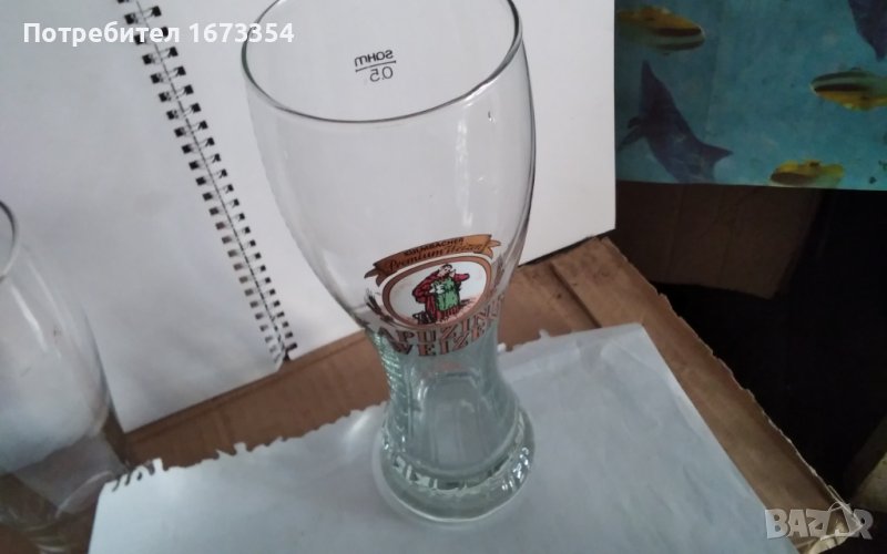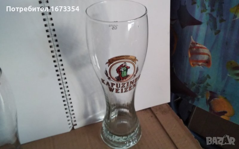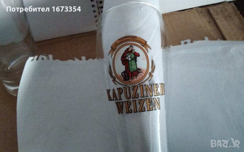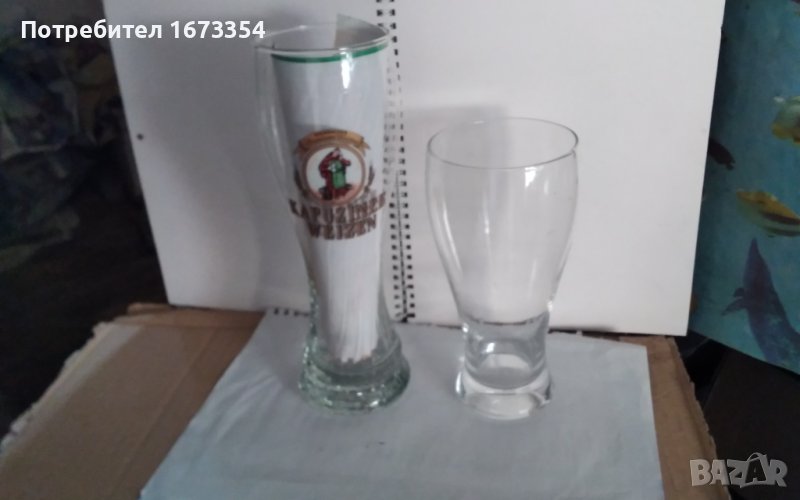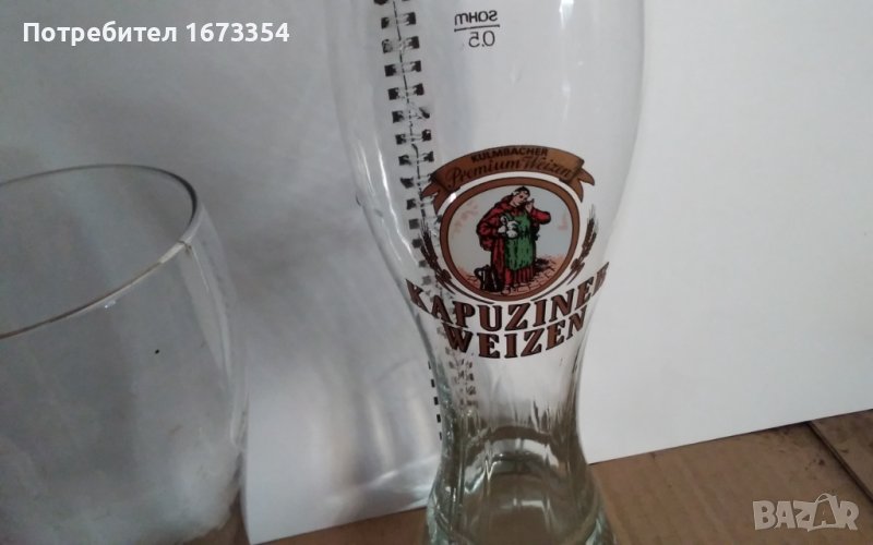 1) НЕМСКА СТЪКЛЕНА ХАЛБА ЗА БИРА рядка и красива с размери височина 24 см и диаметър на отвора 7,5 см с вместимост 0,500 лС лого на Капуцините и на бира КУЛМБАХЕР2) Халба неизвестна БГ ,ТУРСКА ИЛИ КИТАЙСКА .нова още с лепило от етикета с размери височина 18 см и диаметър горе 8,5 см долу 6,5 смЦената е за двете като цената на Немската е 20,00 лв а другата е бонус
