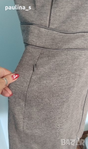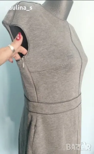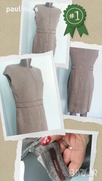 1️⃣. Колаж / L / 3XL - "Windsor". Цената е крайна 49,99лв / 25 евро. Стилна дизайнерска рокля със скрити ципове на джобовете, отзад и в страни. Материята е плътно и еластично трико, мека и приятна за носене, покрива няколко размера, една бройка е. Нова без етикет.