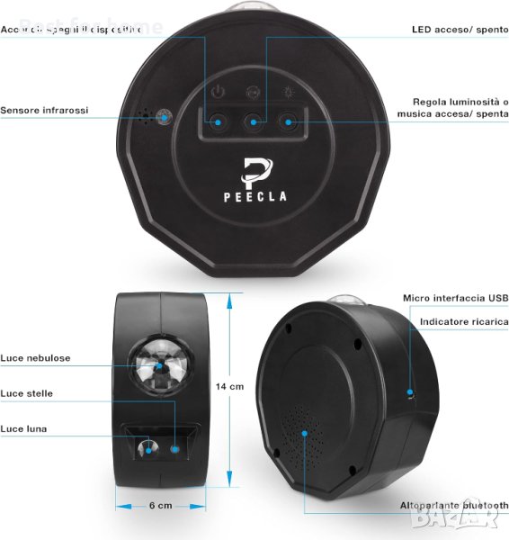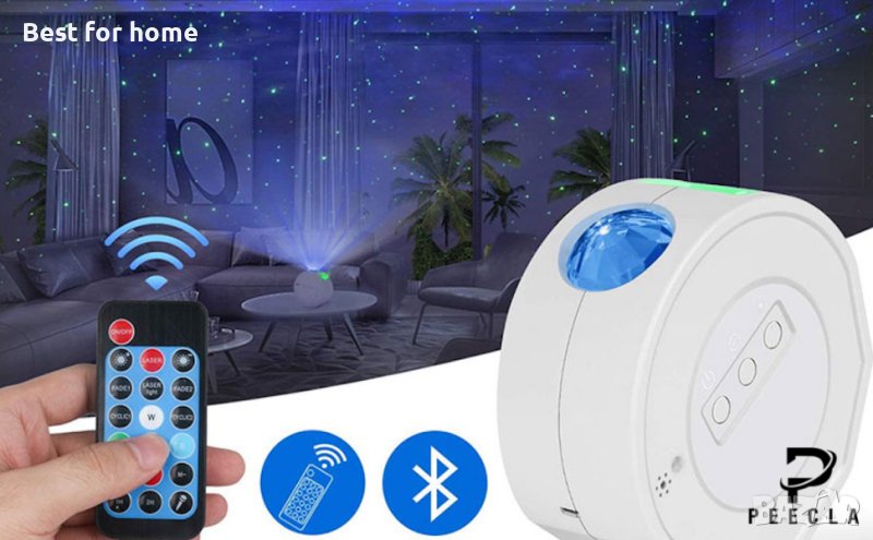 PEECLA Проектор звездна галактика/Bluetooth високоговорител/таймер/дистанционно НАЛИЧНО в Бял и Черен цвят на корпуса